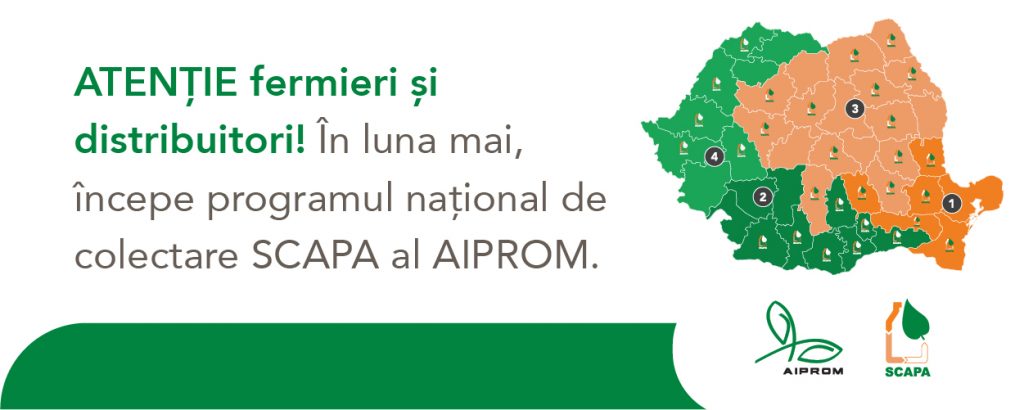 Sistemul de Colectare a Ambalajelor de Pesticide al AIPROM – SCAPA – se desfasoara la nivel national inca din anul 2008. SCAPA este un mecanism de colectare, transport si valorificare a deseurilor de ambalaje din plastic, metal si hartie provenite de la produsele pentru protectia plantelor.