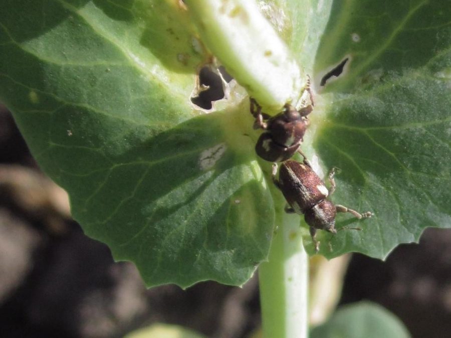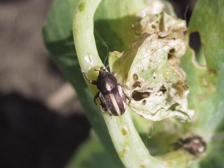 In primavara anului 2012, in prima decada a lunii mai, in vestul judetului Calarasi am constatat un atac foarte ridicat al adultilor gargaritei punctate (Tychius quinquepunctatus) la plantele de mazare.
