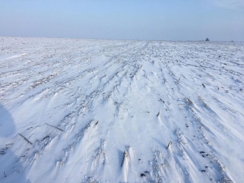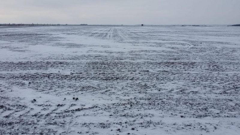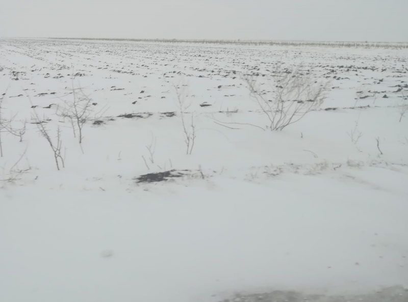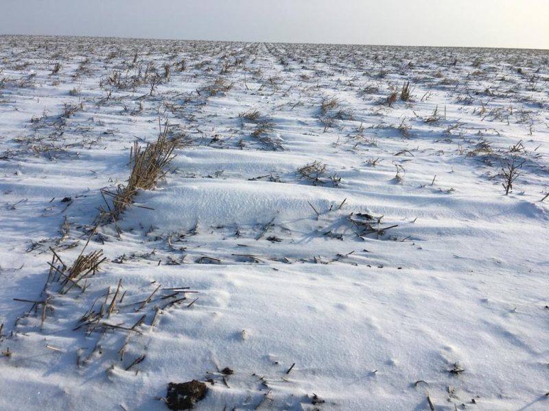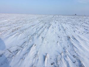 Județul Timiș (08.01.2019): 5cm de zapadă peste cereale foarte tinere, -13°C dimineața la ora 6:30, – 6°C sub stratul alb.