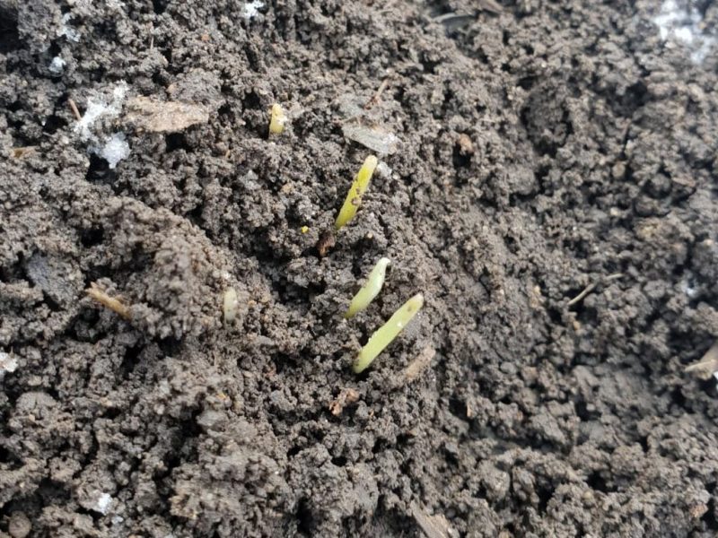 În prezent avem 380-400 de plante ridicate în laborator, în câmp plantele au germeni de 5 până la 6cm, fără plante răsărite deocamdată.