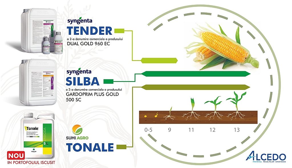 TONALE este un erbicid cu actiune sistemica si reziduala, ce combate buruienile monocotiledonate si dicotiledonate anuale din cultura de porumb. Se aplica o singura data pe sezon, atat in preemergenta (BBCH 00-09), in doza de 1,7-2 l/ha, cat si in postemergenta timpurie, cand plantele de porumb au 2-4 frunze (BBCH 10-14), doza recomandata fiind de 1,5-2 l/ha.