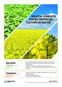 Compania Corteva Agriscience™ va pune la dispozitie solutia completa pentru protectia culturii de rapita: combaterea buruienilor dicotiledonate – erbicidul KORVETTOTM si controlul celor mai importanti daunatori ai acestei culturi – insecticidul INAZUMA®.