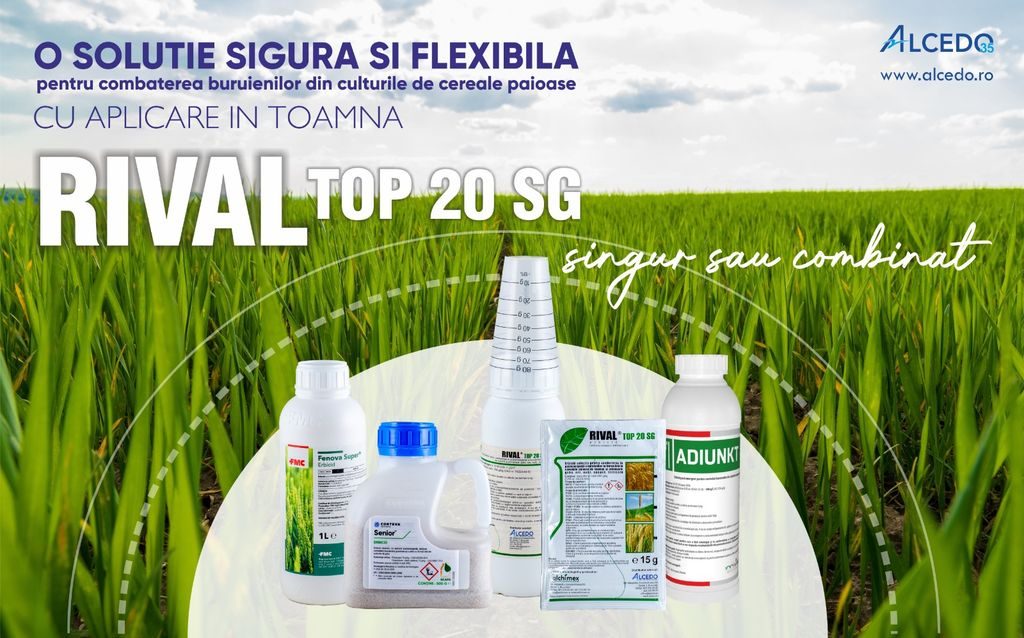 Pentru a avea un spectru mai mare de combatere a buruienilor puteti aplica, pe langa erbicidul RIVAL TOP 20 SG, si alte erbicide, precum ADIUNKT 500 SC sau TUSK, dar si antigraminicidele FENOVA SUPER si SENIOR, pe care le gasiti si in PACHETELE TEHNOLOGICE de la ALCEDO pentru CEREALE PAIOASE.