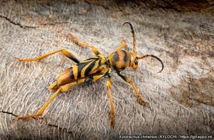 Xylotrechus chinensis (Coleoptera: Cerambycidae) este un daunator de lemn care a fost semnalat, recent, in doua tari din Europa (Spania si Grecia), cauzand mortalitatea copacilor din specia Morus spp. (dudul). In aria sa de origine, s-au raportat si alte plante gazde, printre care: Malus spp. (marul), Pyrus spp. (parul) si Vitis vinifera (vita de vie).