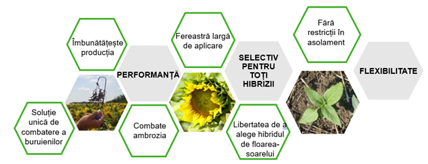 - EFICACITATE EXTRAORDINARA in combaterea buruienilor dificil de controlat, chiar si a biotipurilor rezistente, din cultura de floarea soarelui