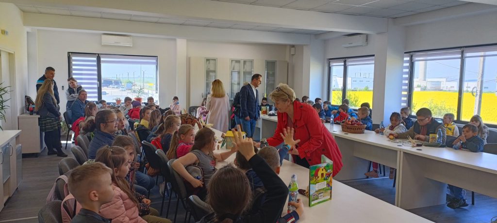 In cursul zilei de ieri, 24 aprilie 2023, ne-au onorat cu prezenta la depozitul din Carei, elevii din localitate. Colegii nostri i-au intampinat pe micii oaspeti cu fructe, pentru a le oferi un surplus de energie pentru discutiile despre ce reprezinta agricultura pentru oameni, prezentarea diferitelor departamente din cadrul centrului logistic Alcedo Carei si facilitatile acestuia.